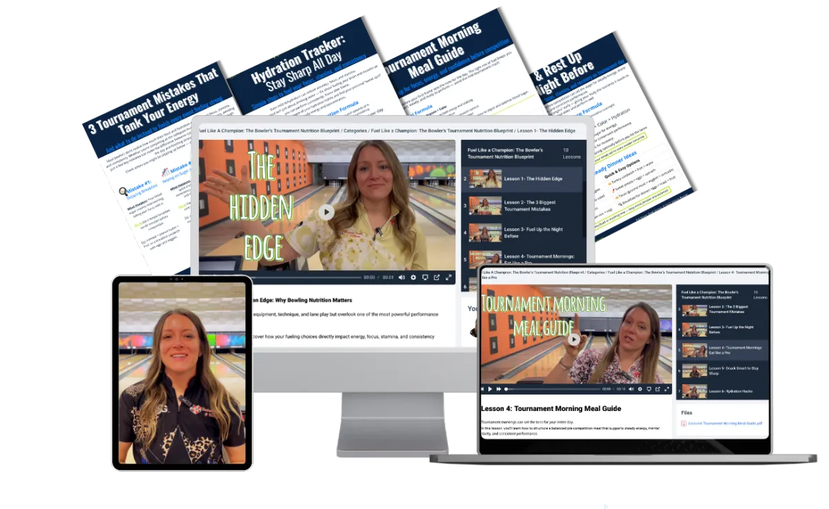 Unlike generic sports nutrition plans, this mini-course shows you exactly how to fuel before, during, and after bowling tournaments so your body and mind stay sharp from the first frame to the finals.